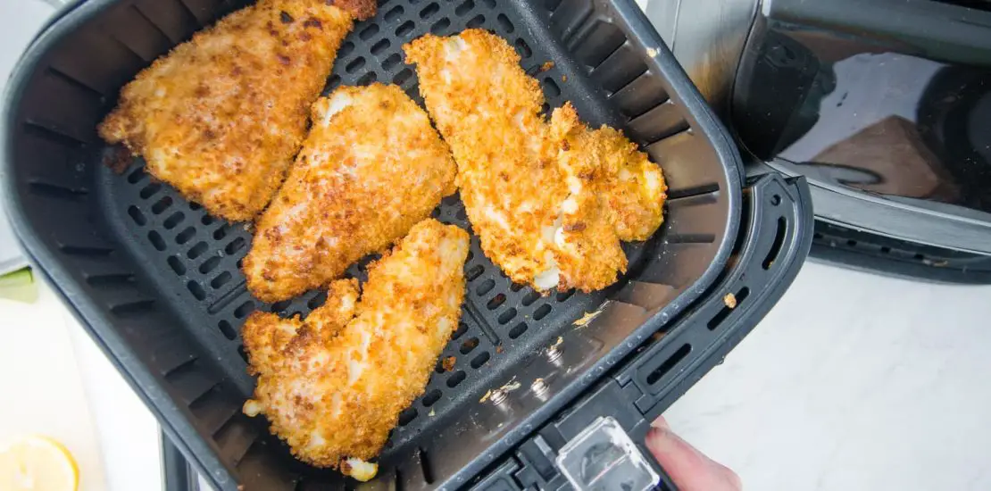 Place a sheet of parchment paper in the basket of your air fryer and generously spray it with cooking oil spray. Carefully place the coated fish into the basket. The fish pieces can be touching but not overlapping.