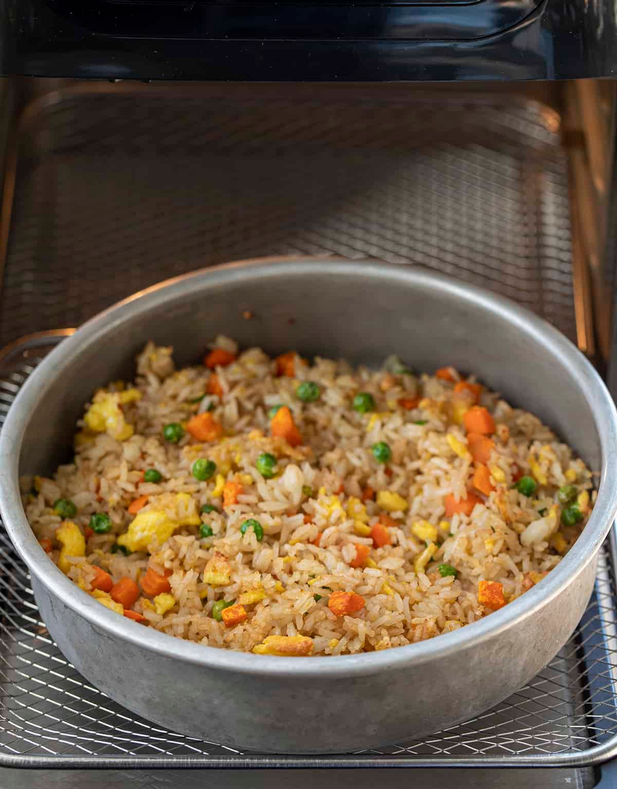Less Oil: Traditional fried rice requires several tablespoons of oil. The air fryer method uses significantly less without sacrificing flavor.