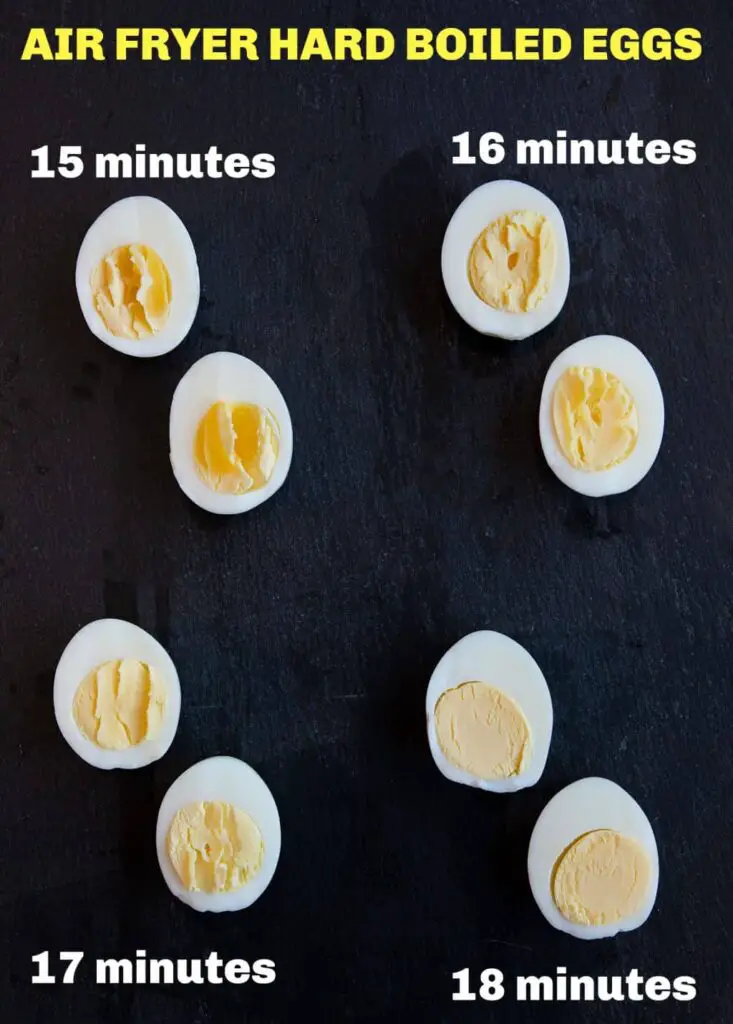 The best part of these eggs is how easy they peel! Only the 15 minute egg gave me a hard time. Next up, mastering the perfect air fryer soft boiled egg!