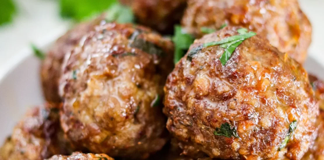 With only a handful of fresh ingredients, these air fryer meatballs are done in 20 minutes! Super juicy and delicious, these are the best meatballs!