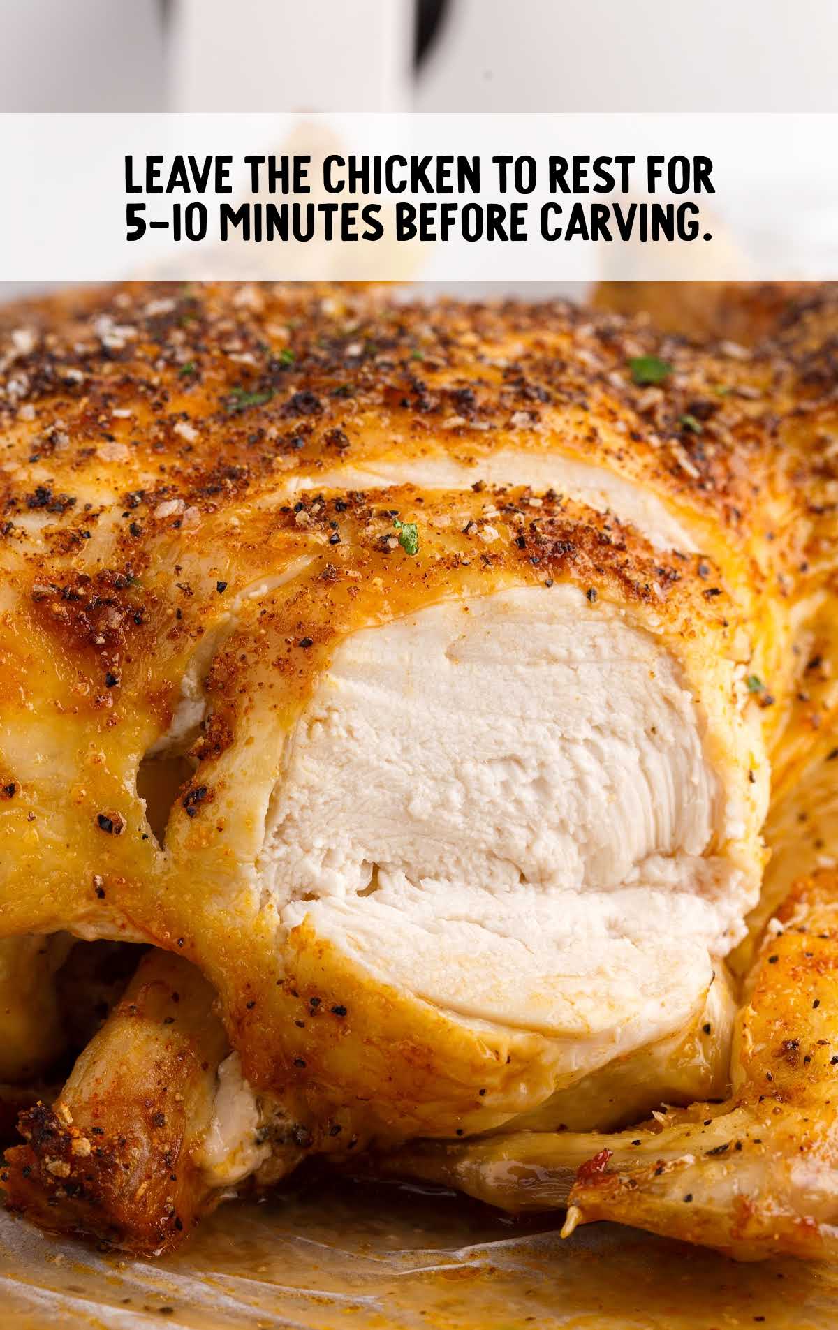 Once cooked, remove the chicken from the air fryer and let it rest for 10 minutes before carving. This allows the juices to redistribute, resulting in more flavorful and tender meat.