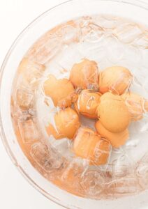 Once the timer goes off, use tongs to carefully transfer the eggs into a bowl of ice water. Let them sit for 5–10 minutes. This stops the cooking process and makes peeling easier.
