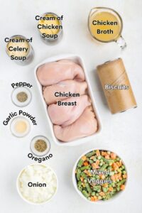 - Refrigerated biscuits – The finishing touch contributes a flaky, golden topping for the pot pie..