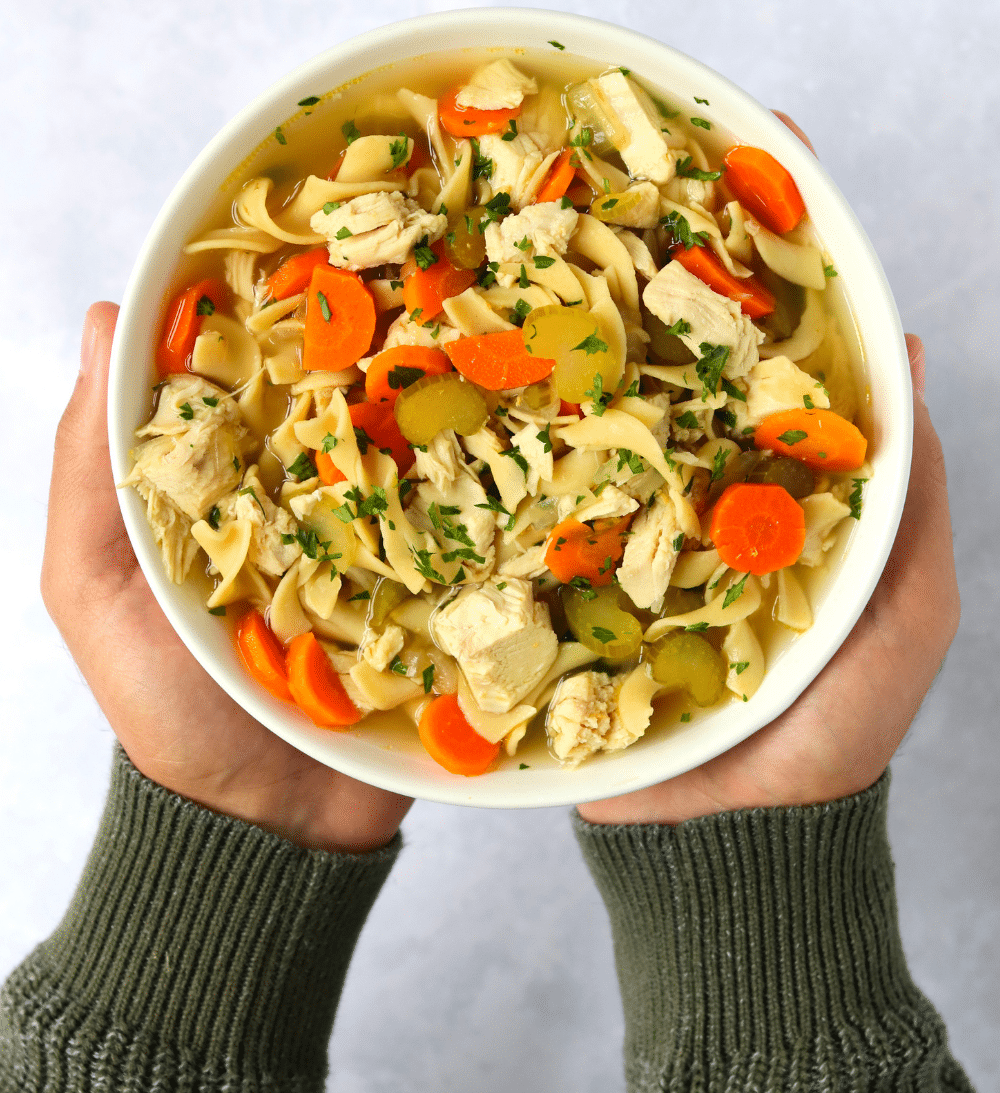 Noodles – Egg Noodles will continue to cook in the hot soup. If you prefer noodles that are not as soft, you can also cook them separately on the stove (following package directions) and ladle into individual bowls of soup. This is also my recommendation if you’re storing leftovers.