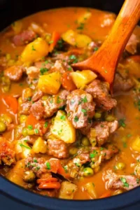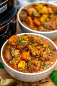 Any type of meat can be overcooked, no matter how you cook it. For this stew, I’ve found that the best way is to set the slow cooker on low and let it go for at least six hours. Cooking it on high can boil the meat instead of braising it, which makes it tougher because it cooks too quickly. And if it finishes early and stays on the heat too long, it can still end up overcooked and dry.