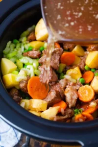 - Vegetables: I keep it simple with baby carrots, diced celery, and halved baby red potatoes. Frozen peas go in too and hold their shape perfectly fine.