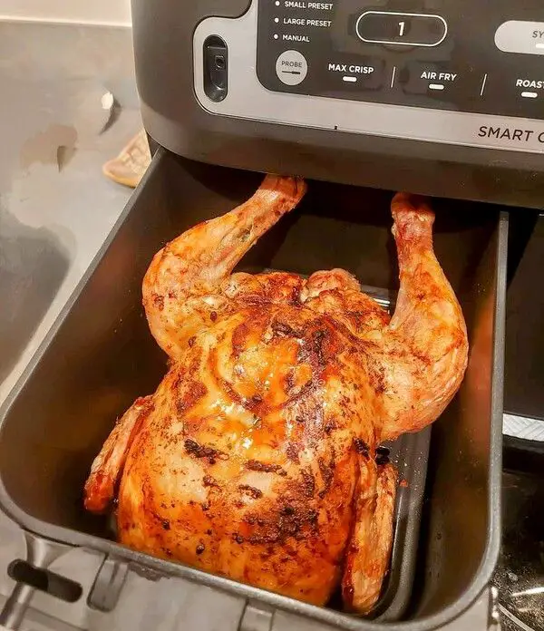 Make sure your chicken fits comfortably in your air fryer basket. Most air fryers can handle up to a 1.5 kg chicken, but check your appliance size.